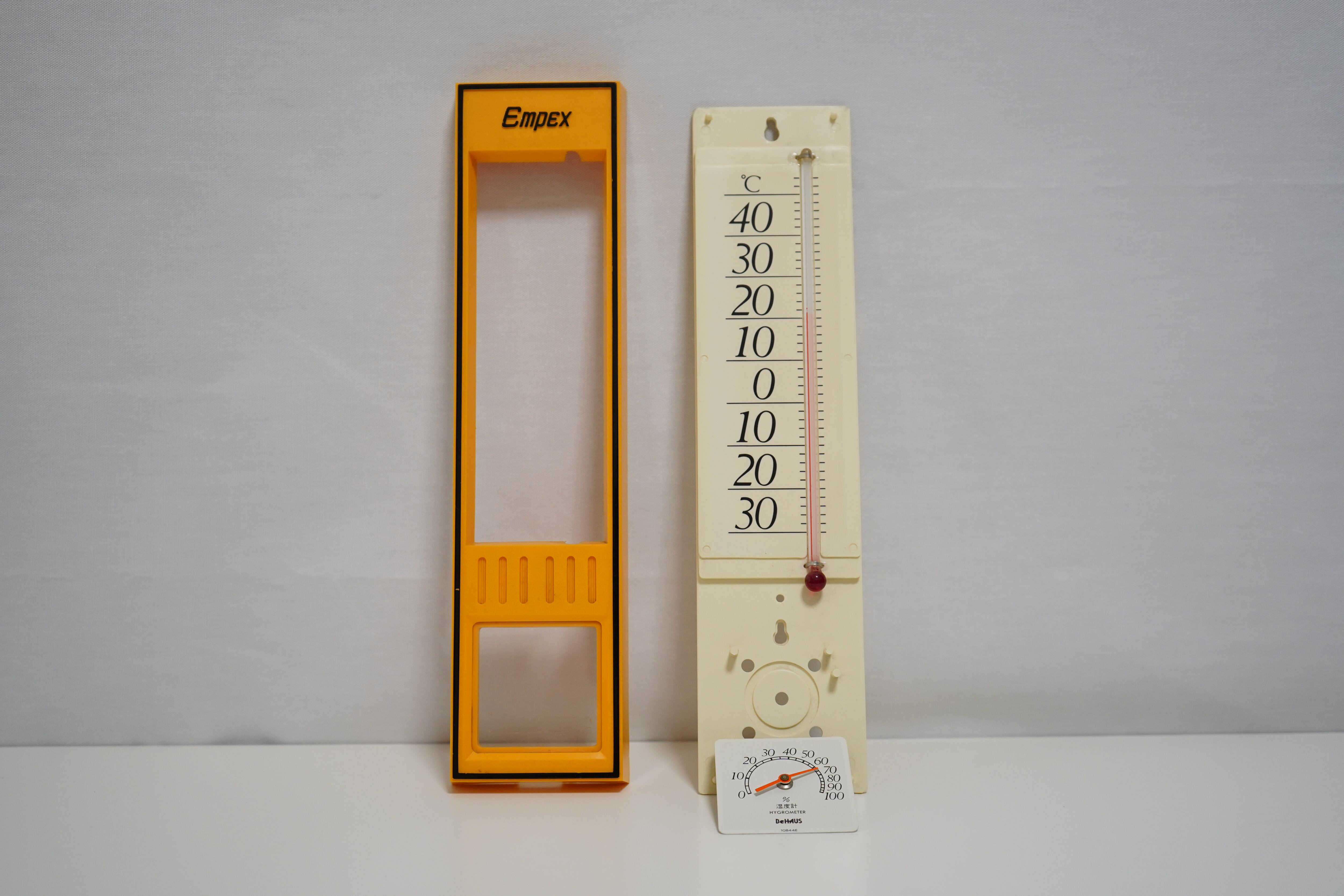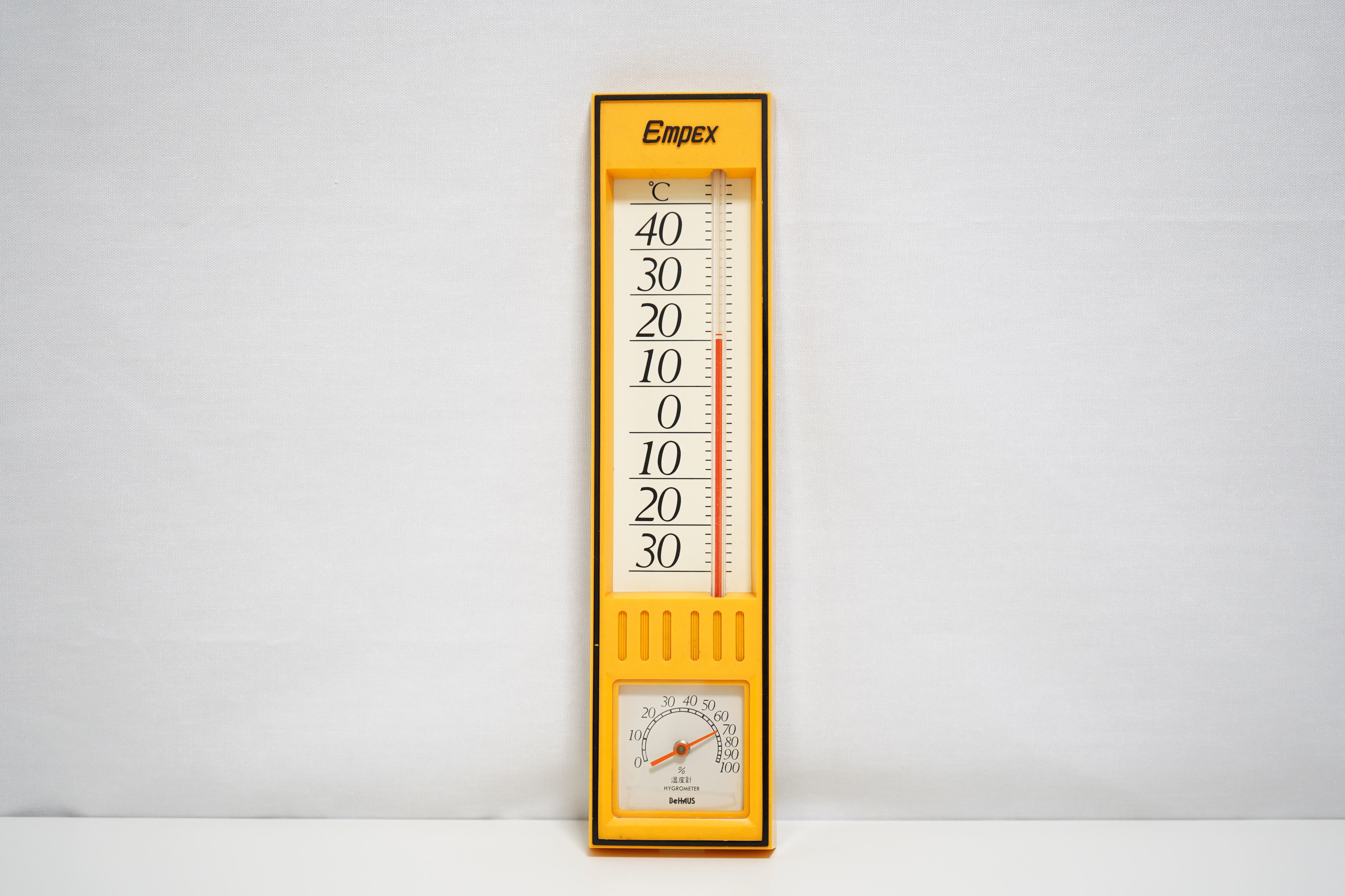 アナログ表示の温湿度計、-30℃~40℃の範囲で測定可能です。
