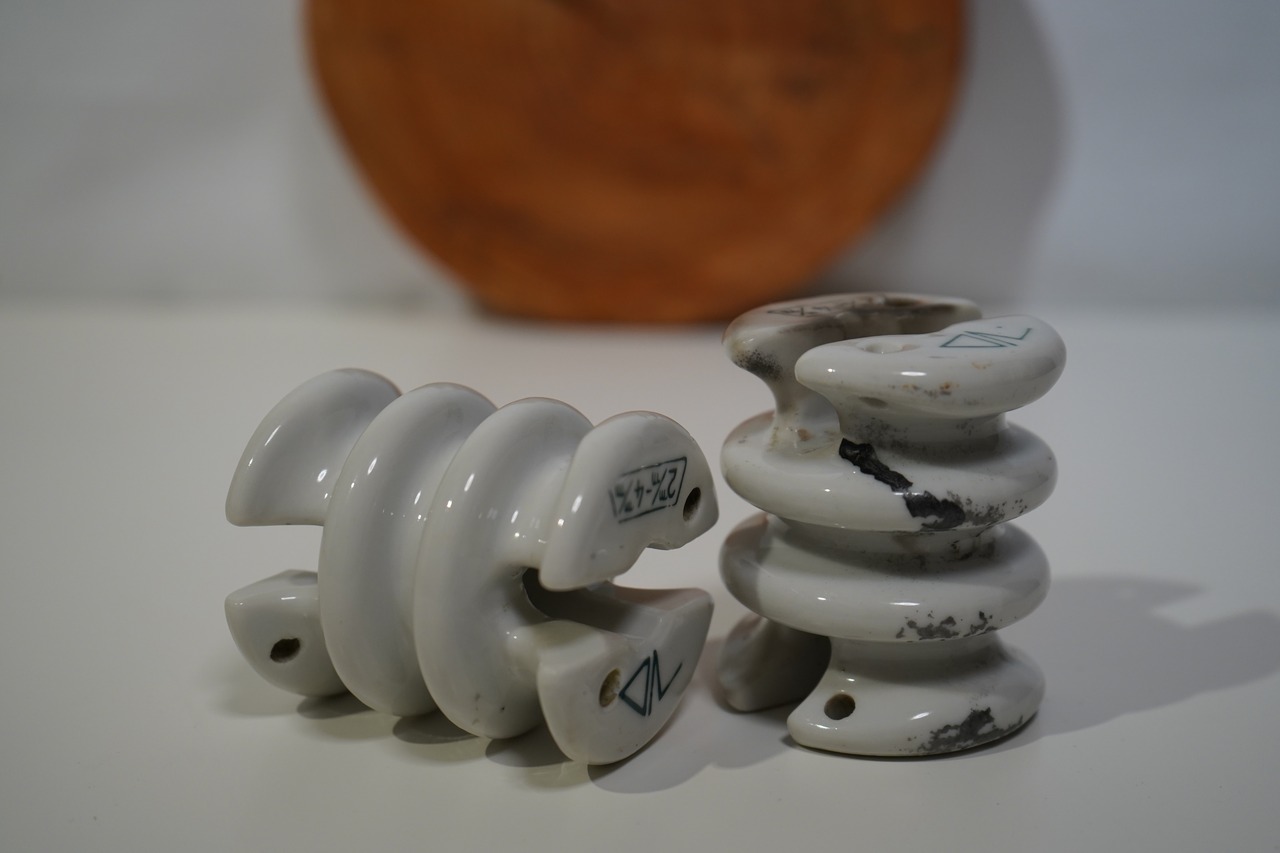 「電線を支えつつ、電気を外に逃がさない絶縁用パーツ」